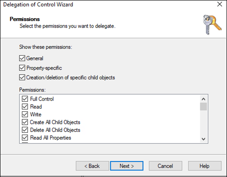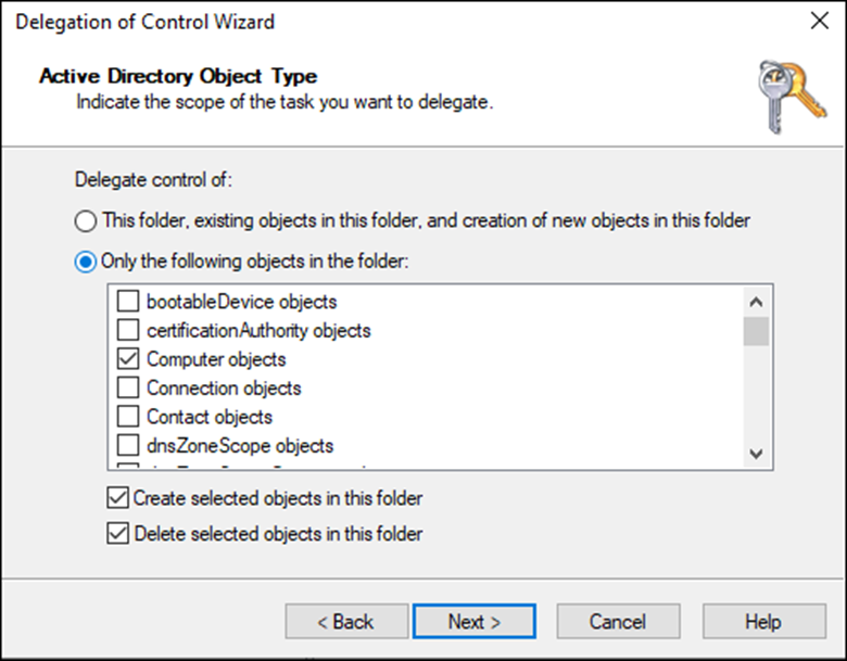 추가되면 Computers 개체에 대한 권한 위임을 진행합니다.