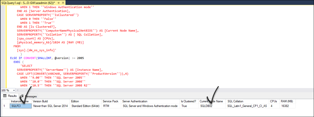 SERVERPROPERTY(''ComputerNamePhysicalNetBIOS'') AS [Current Node Name],