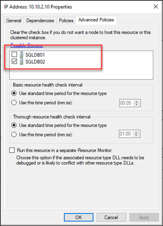 SQLDB02도 동일하게 Zone2 서브넷의 부여한 IP를 설정하고 소유자 노드를 SQLDB02로 설정합니다.