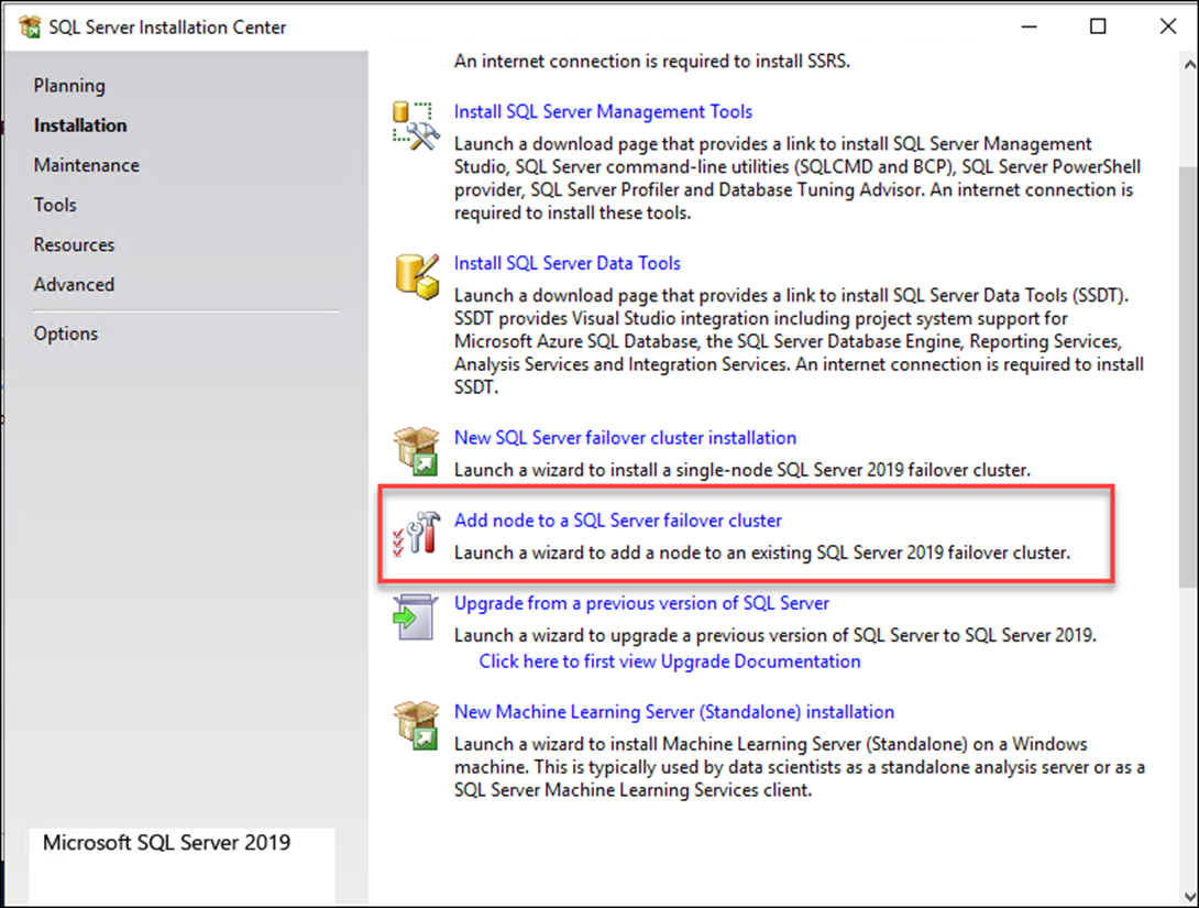 코어 클러스터의 온라인 노드에서 SQL 이미지내의 setup.exe를 실행합니다.