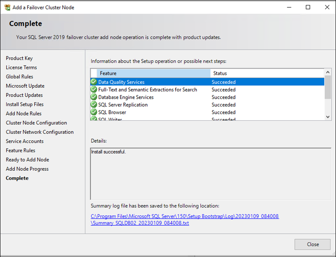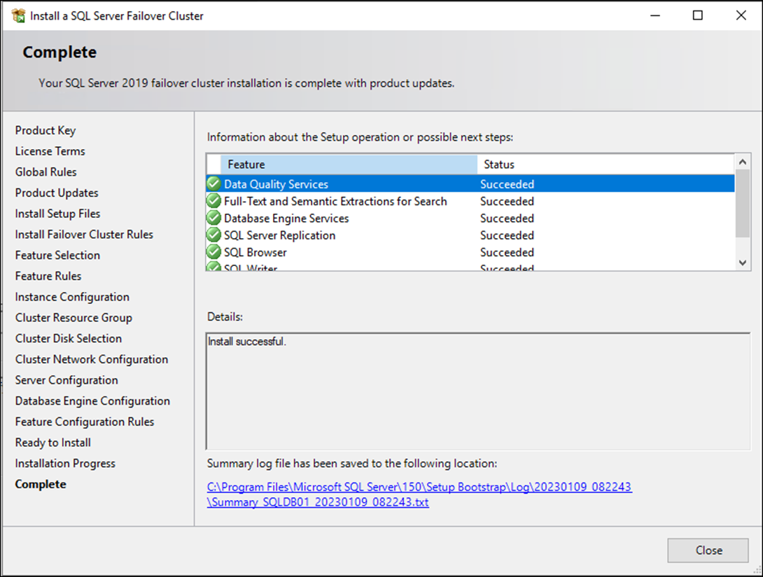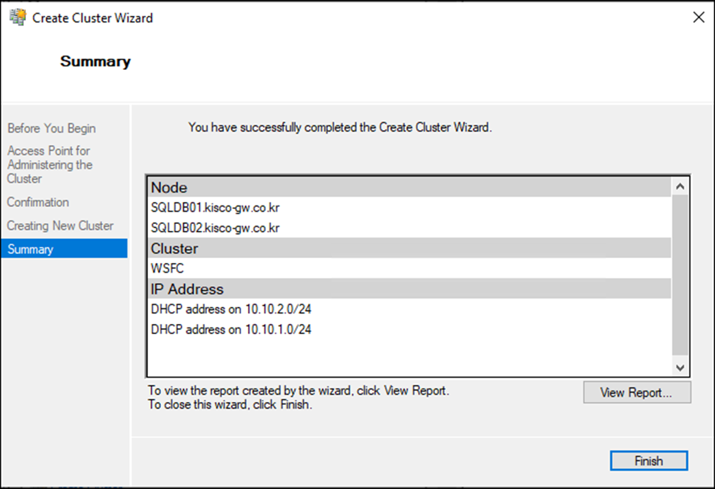 다음과 같이 SQL 클러스터 구성이 완료되었습니다.