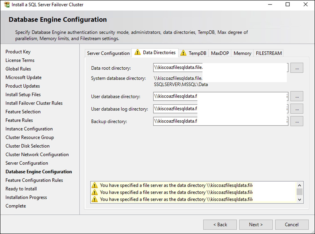 선택 후 데이터 디렉토리를 선택하여 FSx 공유 폴더 경로를 입력합니다.