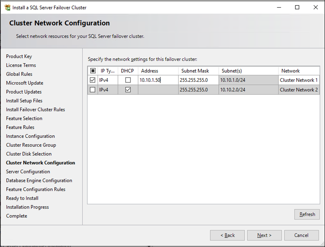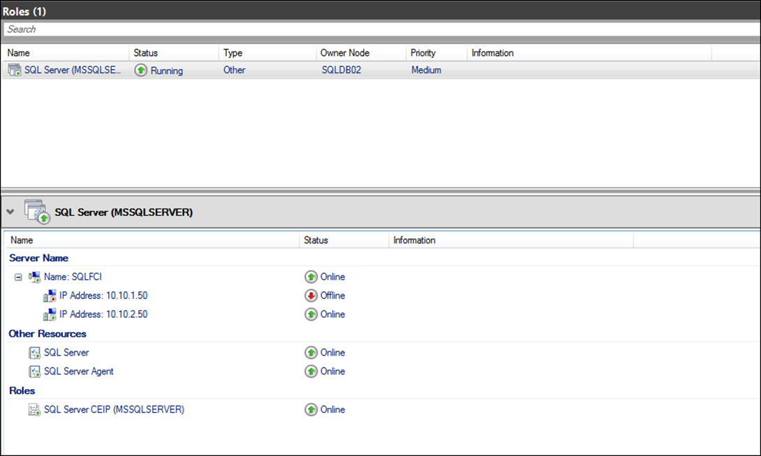 SQL FCI IP: SQL 클러스터 역할에서 사용하는 IP