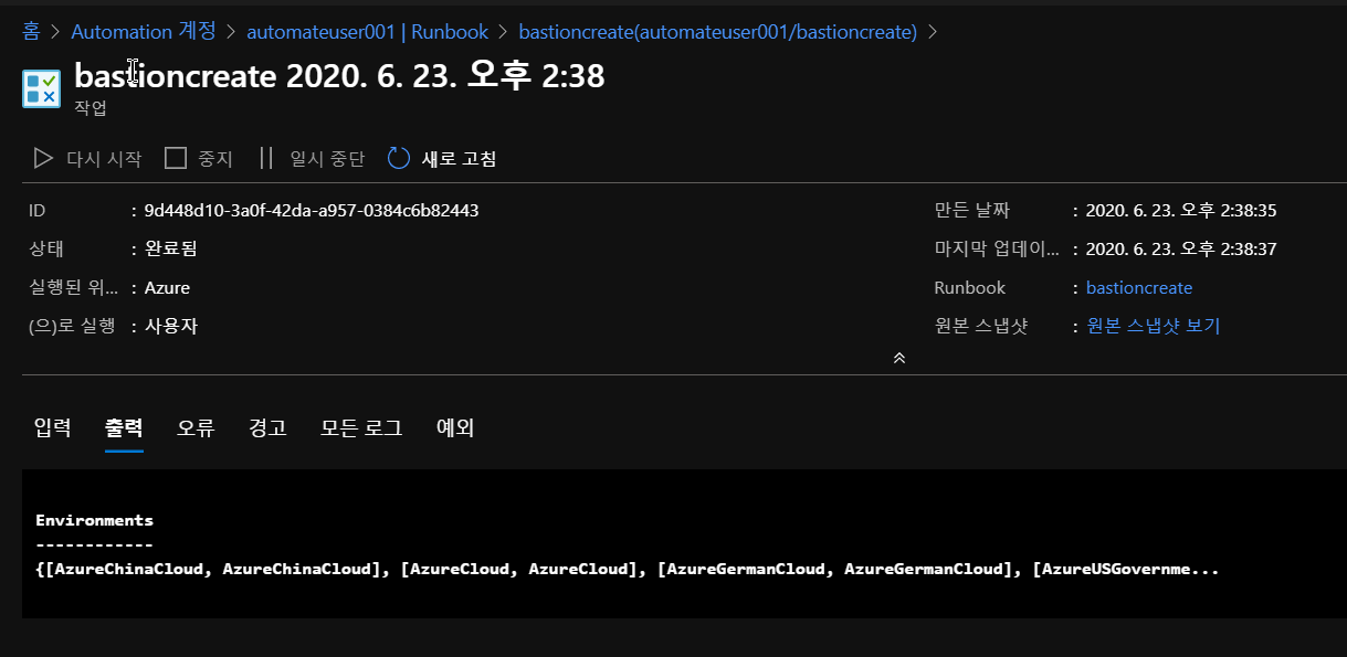 위 과정을 진행하면 비로소 Runbook에서 az 모듈을 사용할 수 있게 됩니다.