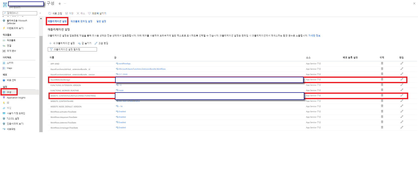 재생성을 하거나 다른 Storage Account를 연결하는 경우 하기와 같이 두개의 구성값을 변경해 주어야 합니다.